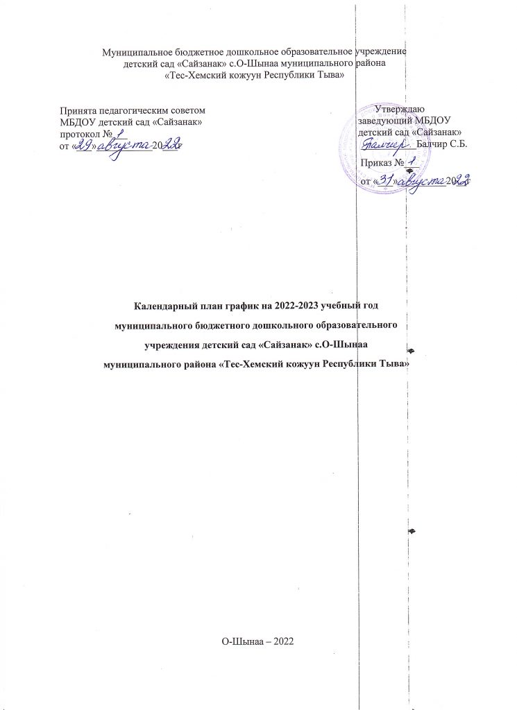 Годовой календарный план заведующего на 2022-2023 учебный год